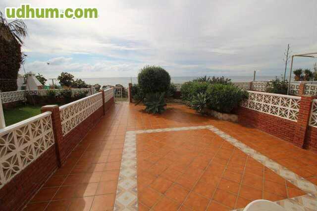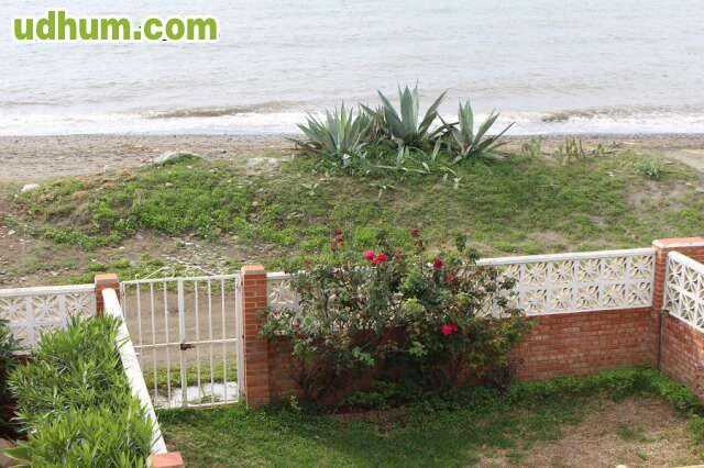 Chalet en primera línea de playa en Torrox Costa. La vivienda tiene 100 m2 construidos sobre una parcela de 150 m2 y cuenta con 2 plantas. Dispone de tres dormitorios con terraza, dos de ellos frontales al mar, cuarto de baño, aseo, cocina, salón, patio y terraza junto al mar. Jardines, zonas para árboles frutales y con las mejores vistas al mar. Amueblada. Ref. ML160. CE: G