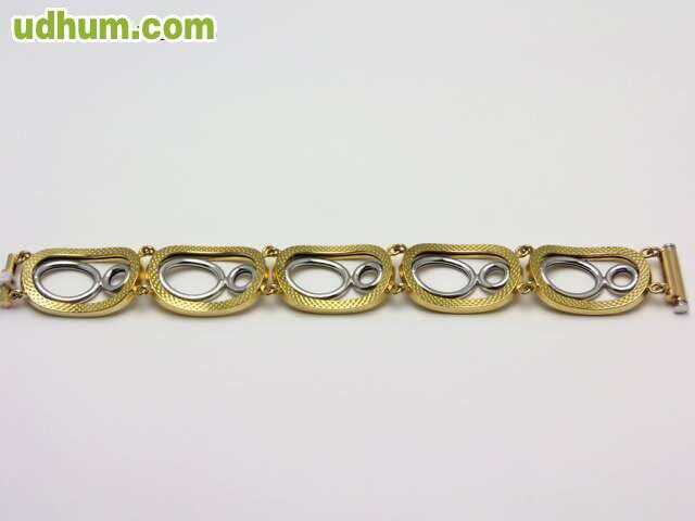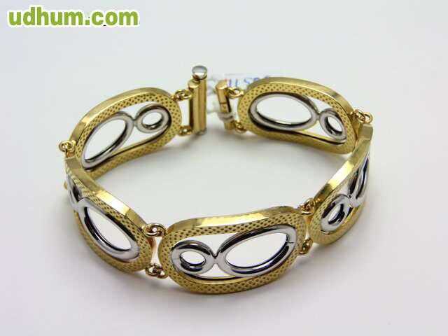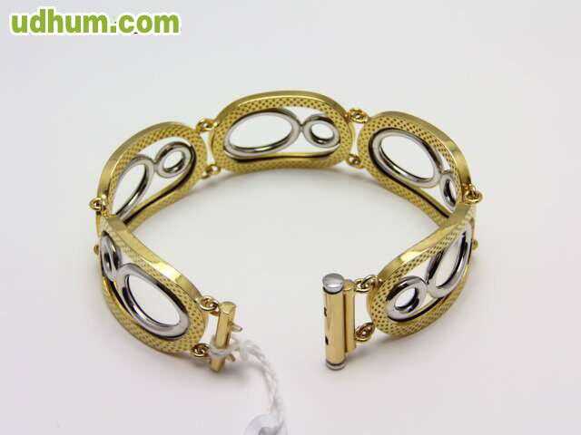 ANTES 2300 EUROS-AHORA 1150 EUROS. pulsera combinada en oro 18 kt de primera ley A 50 EUROS GRAMO. tiene un peso de 23 gramos, longitud 19 cm y anchura 2. 3 cm. con certificado de garantia. visitenos en nuestra joyeria en calahorra. posibilidad de pago a plazos sin intereses. elija sus propias cuotas. solo atendemos llamadas. gracias. www. losantosjoyeros. com. envio a toda españa.