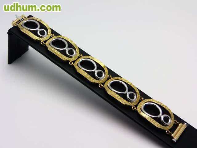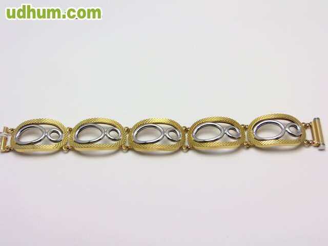 ANTES 235 EUROS-AHORA 118 EUROS. pulsera combinada en oro 18 kt de primera ley a 50 euros gramo. peso 2. 35 gramos, longitud 17 cm y anchura 7 mm. certificado de garantia. visitenos en nuestra joyeria en calahorra. posibilidad de pago a plazos sin in