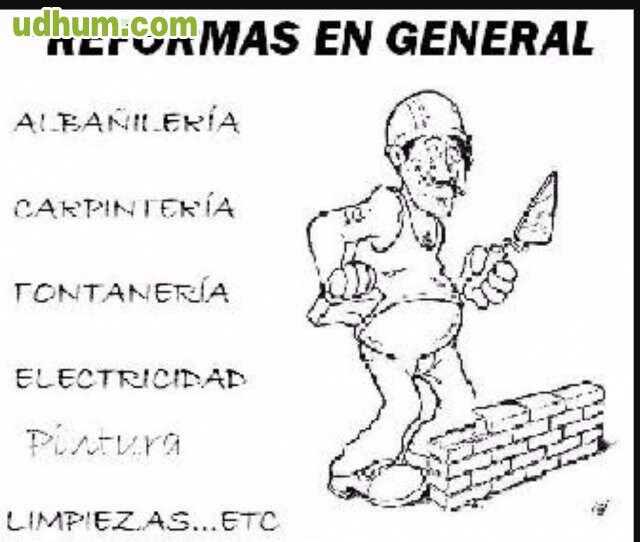 Reformas en general muy economicos presupuestos sin compromiso, atencion 24h realizamos albañileria, carpinteria, pintura, fontaneria, electricidad. trabajos muy puentuales y economicos todo tipo de trabajos limpieza de jardines y demas