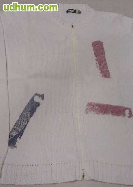 -Chaqueta blanca MONTOTO. Cierre con cremallera y 2 bolsillos en la parte de abajo. tiene unas pinceladas de color por delante y blanca la espalda. Talla: M Composición: 50% algodón, 50% acrílico. -Chaqueta beig con 2 bolsillos, cierre c/cremallera y