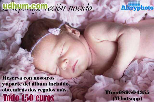 No dejes pasar el momento mágico que es el nacimiento de tu hijo. Dedícale un amplio reportaje. Esta oferta tiene un precio de 150 euros. Conlleva el álbum incluido, resto de fotos dadas en un pendrive y dos magníficos regalos. Consultanos sin compromiso. Se atiende whatsapp.