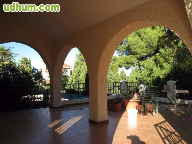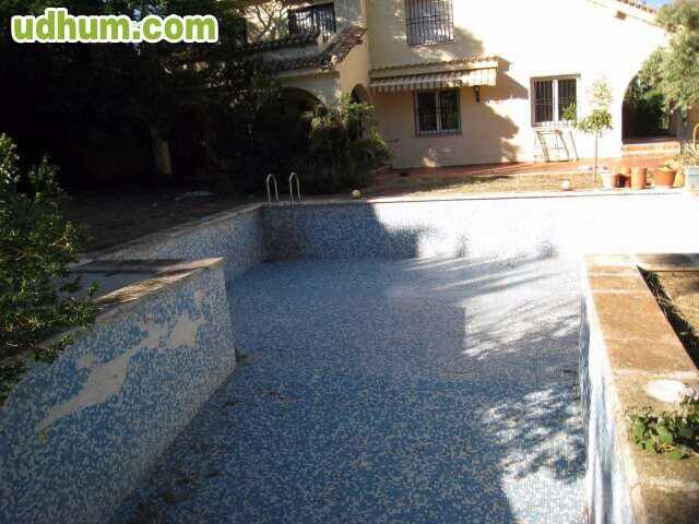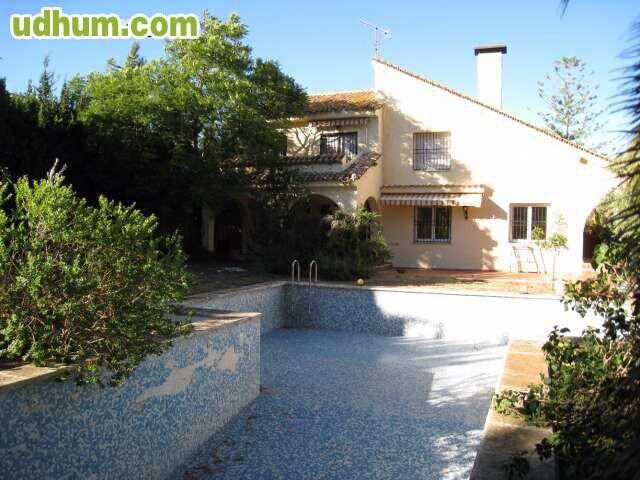 Ref: 633. Chalet independiente en urbanización, en dos plantas con parcela de 1300m2. y vivienda de 240m2. Distribución: Planta baja. Amplio salón comedor en dos alturas con chimenea, cocina moderna oficce con puerta a terrazas, 2 habitaciones, 1 baño. Primera planta. Estudio con chimenea, 2 habitaciones, 2 baños. Calidades: Suelos de gres, ventanas de climalit, carpintería lacada en blanco, calefacción por radiadores, armarios, rejas en ventanas. Amplio jardín, terrazas, paellero, trastero, garaje tipo po. Garaje. Trastero. Terraza. Calefacción. Piscina. Jardín. Se aceptan mascotas. CE: G