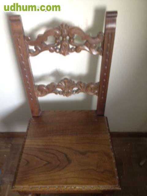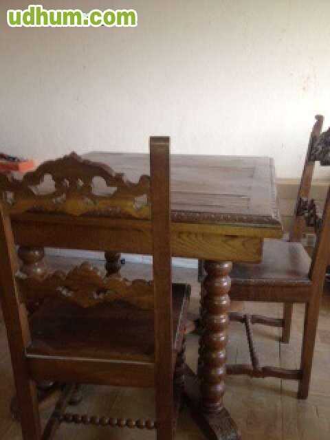 Muebles de castaño tallado: aparador, 4 sillas y mesa.