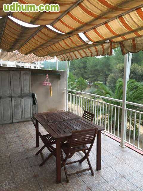 Se alquila apartamento en Sant Salvador. 1a línea de playa. ático de 140 m2. 4 hab (una suite de matrimonio con baño, una con cama de matrimonio, una con dos camas y una con tres camas). Baño adicional, cocina con galería equipada y 3 terrazas. Solár