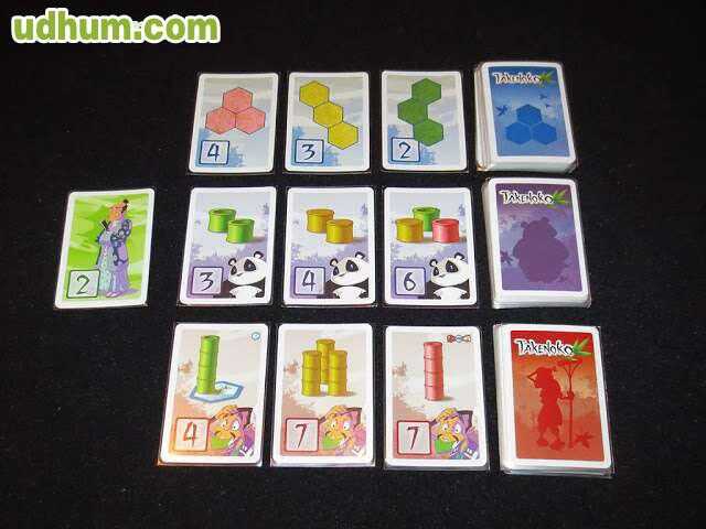 Cartas que NO incluyo en el set: -Cartas de objetivo Panda - Bambú verde (5 cartas) -Cartas de objetivo Parcelas - 4 parcelas rosas (1 carta) -Carta de Emperador (1 carta) Las otras 39 cartas están todas incluidas.
