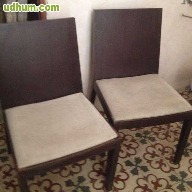 Vendo 2 sillas de madera color wengué y asiento de tela color beig. 25 cada una.
