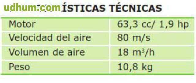 (8m) Este soplador de mochila es el más ligero de la gama aún así tiene 1, 4 cv a y proporciona un caudal de aire de 780 m3/h y sopla a una velocidad de 450 km/h. su diseño ergonómico y su peso, de tan sólo 6 kg, lo convierten en un soplador de mochi