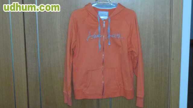Sudadera con capucha y gomas en las mangas. Talla mucho menos. Color Naranja