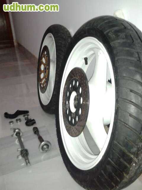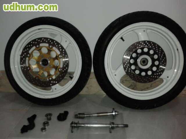 Hola vendo juego de ruedas Supermotard completas para KTM . Delantera disco 270mm 110/60/r17. trasera220mm 130/60/r17, neumaticos Michelin adactador pinza d freno delantera y 2ejes completos, atiendo Whatsspp.