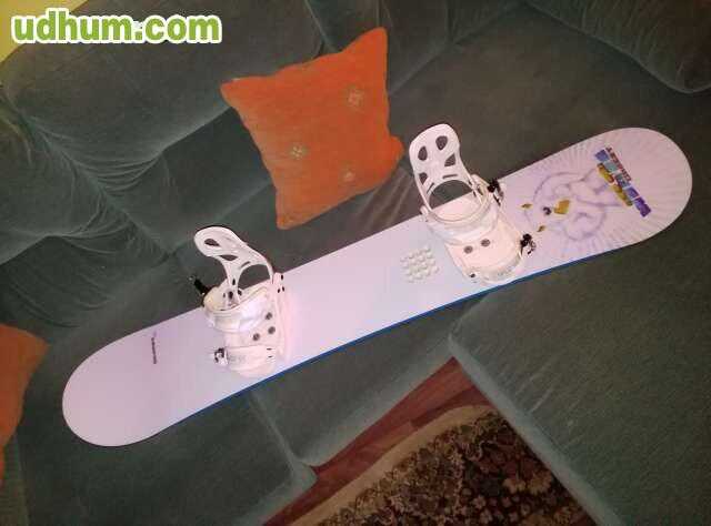 vendo tabla de snowboard burton modelo clash, de 1. 58, la tabla esta nueva, ha subido tres veces a la nieve, pero solo tres veces, tiene algun arañazo pero ningun golpe, fijaciones flow tambien nuevas y bolsa de transporte quicksylver.