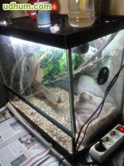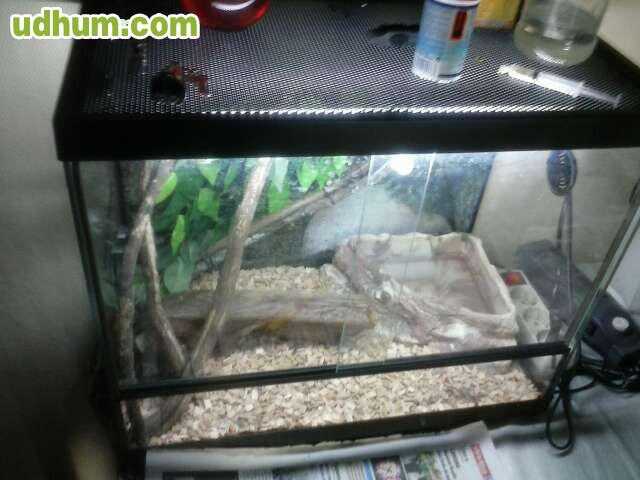 se vende este gran terrario por la muerte de su inquilino se regala el calentador medidas ancho 99cm, alto 50cm y fondo 41, 5cm