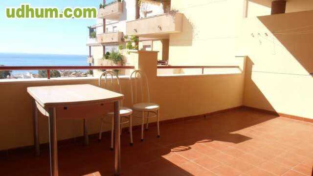 ático amueblado en Torrequebrada, 72m2 en 3ª planta con ascensor. Consta de 2 dormitorios exteriores, baño, salón, cocina equipada, terraza de 12m2 y solárium en cubierta de 72m2 . Anejo: Plaza de garaje cubierta. Instal: Puerta blindada, suelos de t