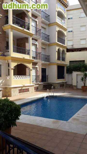 Playa. Apartamento en torrox costa a solo 50 metros de la playa, 2 dormitorios, baño, salon-comedor, cocina equipada, amueblado, terraza con vistas al mar y piscina comunitaria. 1ª Planta.