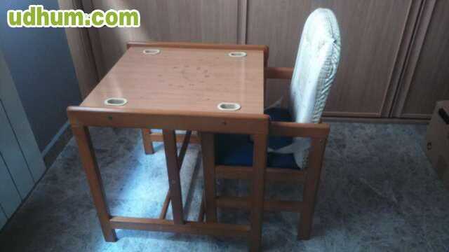Trona de madera, se puede pintar, va en dos piezas mesa y silla