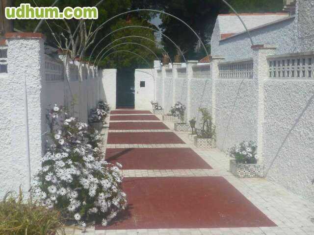 Jardín con porche delantero en el acceso a la vivienda y porche trasero con salida desde la cocina, zona de tendedero, cuarto trastero en un lateral con puerta de seguridad. Planta baja: salón principal con chimenea, cocina, office, salón comedor y distribuidor con dos habitaciones y dos baños completos. Planta alta: tipo loft con un gran ventanal y baño completo. Zona muy tranquila, muy cerca de 3 colegios. A 5 min. Andando, de estación de tren de cercanías. A 10 min. Andando de zona comercial. Playa a unos 900 metros. Trastero. Terraza. Calefacción. Jardín. CE: G