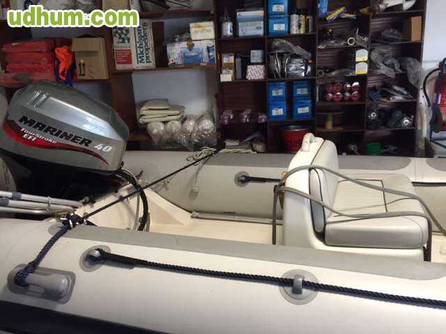 la embarcación se encuentra tanto motor como casco en perfecto estado , ya que se utilizaba como auxiliar de barco grande . Consta de un motor mariner 40 cv 4 tiempos . Como extras tiene escalera de baño y remolque