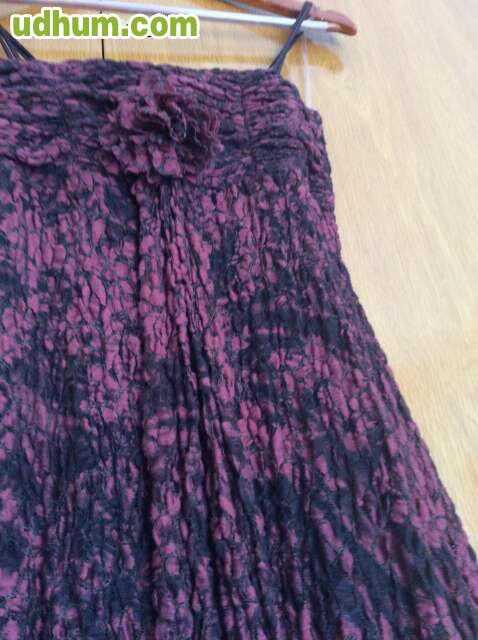 Precioso y original vestido de la marca victoria estepa talla m las fotografias no le hace justicia tiene escote tipo palabra de honor pero con unos tirantes muy finitos y una flor misma tela en medio del escote . tela rizada. con corte mas largo que por detrás que por delante por lo que aunque no llega del todo al suelo, pareciera que tuviera un poquito de cola en color combinacion burdeos y negro , es algo elástico ajusta y estiliza. whassap