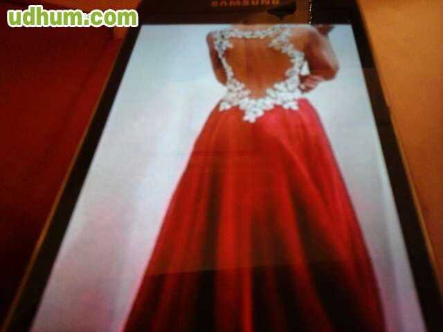 Se vende vestido de fiesta nuevo, comprado en Nueva York, con encaje y pedreria en la parte de arriba y su fular. Talla 14 que equivale a la 44. Costo 850 euros.