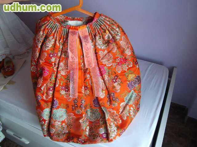 Se vende traje fallera para niña de 3 a 6 años, color naranja. se incluye cancan con salla, manteletas, tres pares de zapatos (tallas 27, 29 y 31) y pañuelón. muy buen estado. Color Naranja