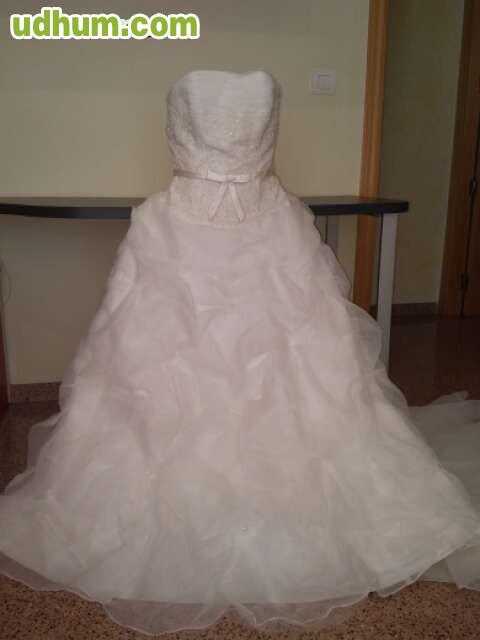 Vestido novia rosa clara colección two modelo rena talla 42. organza, pedrería en la cadera, lazo atrás, no lleva flor. muy buen estado.